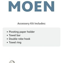 Moen Bath Hardware, Towel Bar, Toilet Paper Holder, Towel Ring, SOLD AS A SET, Satin Nickel, Chrome, And Bronze Finishes$15Houston, TX