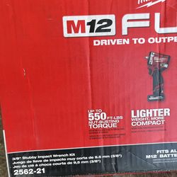 M12 FUEL 12V Li-Ion Brushless Cordless Stubby 3/8 in. Impact Wrench Kit w/(1) 5.0 Ah High Output Battery$250Houston, TX