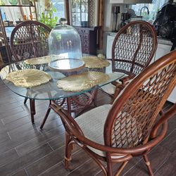 Soonroom Wicker Rattan Style MidCentury Modern Table And 3 Chairs Dining Room Dining Table $300Splendora, TX