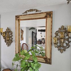 Vtge. Mid-Century Modern l Wall French Provincial Mirror With 3 ARMS CANDELABRA CANDLE SCONCES WITH 6 LARGE AMBER TONE VOTIVES EXCELLENT PRE-OWNE$250Splendora, TX
