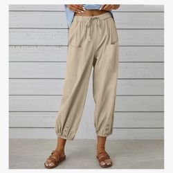 Women’s Capri Pants – High Waist Drawstring Cinch Bottom Cotton Loose Casual Trousers with Pockets – Size M – New$18Humble, TX