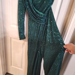 One sleeve Jumpsuit sequin Emerald green size m$50Humble, TX