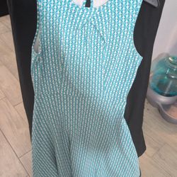 This is a New York Co women's large teal fit and flare geometric dress. $10Houston, TX