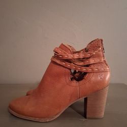 Frye Naomi strappy cognac leather booties w/back zip & whipstitching Size 6.5B.$30Houston, TX