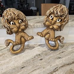 Mid-Century Modern Syroco Wall Gold Lions set of 2 1970's Wall Hanging