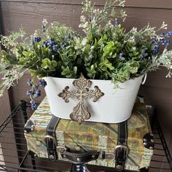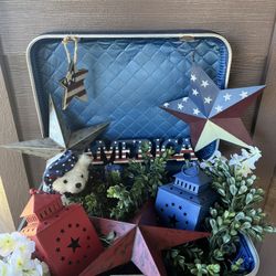 Vintage Suitcase Patriotic Vignette Arrangement $65Montgomery, TX