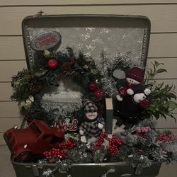 Vintage Suitcase Holiday Vignette Arrangement $75Montgomery, TX