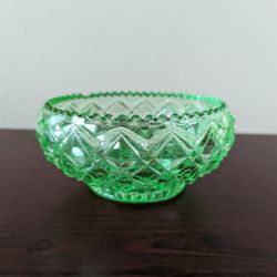 Vintage Green Depression Glass Candy Dish Cubic Pattern With Chip VTG 5 Inch$35Houston, TX