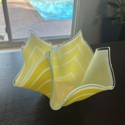 Vintage Chance Brothers Glass Handkerchief Vase Yellow And White Striped$20Houston, TX