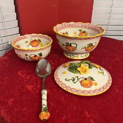 TEMP-TATION OLD WORLD PUMPKIN PATCH CERTIFIED HAND PAINTED 4 PC PEDESTAL SET $45Houston, TX