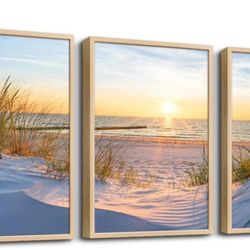 Natural Wood Framed Wall Art For Living Room Large Size Wall Decorations For Bedroom Sun Blue Beach Wall Pictures Artwork Office Wall Decor Ocean Pain$50Spring, TX
