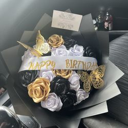 black, gold and white bouquet $60Houston, TX