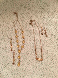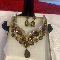 VINTAGE RHINESTONE NECKLACE AND EARRINGS SET AMBER BROWN COLOR STUNNING $25Humble, TX