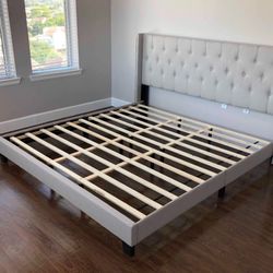 News King Size Beige Platform Bed Frame $240Houston, TX