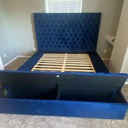 Blue Velvet Queen Storage Platform Bed Frame Cama// King Size Available/ Mattress Sold Separately,,Financing Options $689Humble, TX
