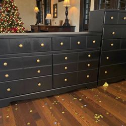 Large Dresser & Chest 2pc Bedroom Set Textured Black Satin New$525Humble, TX