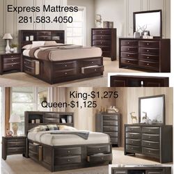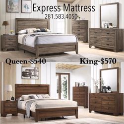 Brand New 4 Pc Queen & King Size Bedroom set (Queen and King Bed Frame, dresser, mirror, nightstand)$549Houston, TX
