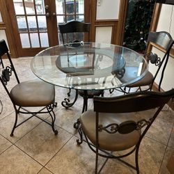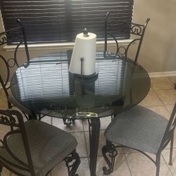 Beautiful Wrought Iron & Glass Table Set 48” With 2 upholstered chairs$175Houston, TX