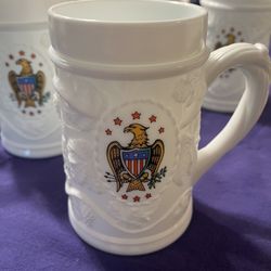 Vintage Milk Glass Steins With American Eagle Emblem Set of 6$50Humble, TX