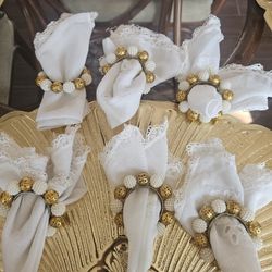 6 Vintage goldtone filigree orbs and alternating faux pearls in a circle wreath $25Splendora, TX
