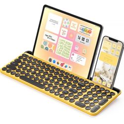seenda Cute Wireless Bluetooth Keyboard, Dual Mode (Bluetooth + 2.4G) Round Key Typewriter Keyboard with Number Pad Integrated Stand (Yellow)$17Spring, TX