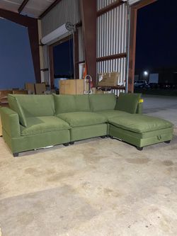Olive Green Cloud Sectional Couch With Storage Ottoman Delivery available 🚚$1,100Cypress, TX