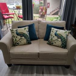Gray Sofa And Love Seat Set With 3 Tables And Decorative pillows $550Houston, TX