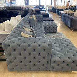 Brand New/ Oversized Gray Velvet Double Chaise Sectional,seccional, Large Couch/ Delivery Available, Financing Options $2,089Humble, TX