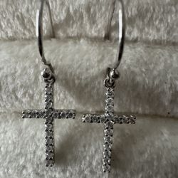 14K White Gold ~1/5CTW Diamond Cross Dangle Earrings $295Houston, TX