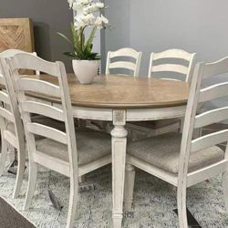 Realyn Chipped White Oval Extendable Round/Oval Ladder Dining Set 6 Chairs And Table $1,079Houston, TX