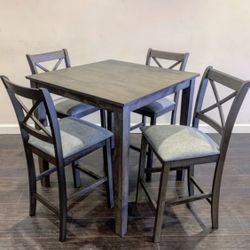 Dining Room Simple, modern pub table and 4 chairs set in a rich grey finish. Dimensions: Table Top 36" x 36"$349Houston, TX