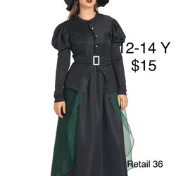 Green Witch Elphaba Wicked Girls Costume Dress 12 / Traje de Bruja Niña 12$15Houston, TX