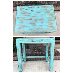 Shabby Chic Solid Wood Aqua & Gold Hand Distressed End Table$65Magnolia, TX