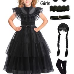 Wednesday Addams Ruffle Dress Halloween Girls Costume 5-7$15Houston, TX