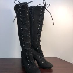 Black Lace Up Boots US sz 10B BCBGeneration Addison Faux Suede 3 1/4" Heel Zip$25Oak Ridge North, TX