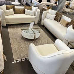 Modern Cream And Gold Sofa,loveseat & Accent Chair π£Same Day Delivery π¦ Not Credit Needed π²$49 Down $49Houston, TX