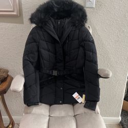 Michael Michael Kors Active Belted Puffer Faux Fur Trim Hooded Coat Jacket Black$100Spring, TX