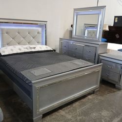New/Silver LED Upholstered Bedroom Set,Bed,dresser, Mirror, NIGHTSTAND,bed//Delivery Available, Mattress Sold Separately $1,349Humble, TX