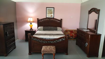 Queen,bed dresser, mirror, night stand, chest, lamp and memory foam. Floor model$2,995Houston, TX