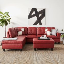 Red Sectional With Ottoman Vinyl $550Houston, TX