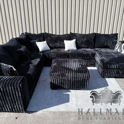 Naomi black velvet-reversible sectional & ottoman set 😍👀🚛🔥📲$599Houston, TX