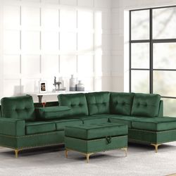 Anserra Green reversible sectional+ottoman set🚛👀📲😍🔥💚$799Houston, TX