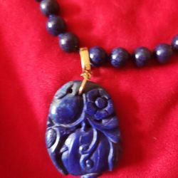 Beautiful Lapis Lazuli Necklace With Gold Beads And Carved Pendant.$225Houston, TX