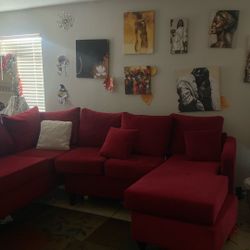 Red Leather Sectional And Wall Pictures$300Hockley, TX