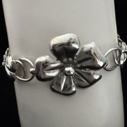 Vintage Sterling Silver ~22.5MM Wide Flower Link Bracelet 7" $97Houston, TX