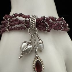 Doug Paulus Sterling Silver Garnet Beaded 4 Strand Bracelet w/Dangle Pearl Heart$75Houston, TX