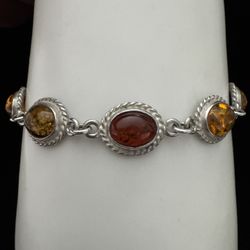 Sterling Silver ~8x6mm Amber Cabochon Cable Twist Detail Bracelet 8"$97Houston, TX