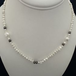 Sterling Silver Freshwater Pearl & Silver Beaded Necklace ~16-18"$65Houston, TX