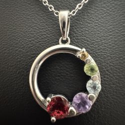 Sterling Silver Genuine Multi Gemstone Circular Pendant Necklace 18"$51Houston, TX