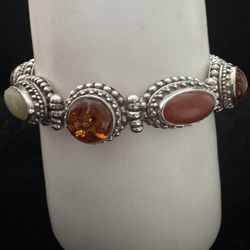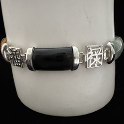 Sterling Silver Multi Color Jade & Black Onyx Chinese Symbol Bracelet 7.5"$129Houston, TX